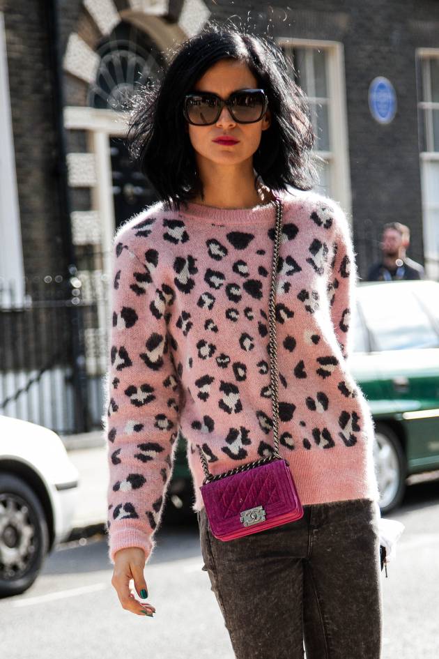 Her look? Trendy and feminine. Her clothes are modern, urban and girlie. We love her pink cat-print jumper that she teams cleverly with other trendy items such as her little quilted shoulder bag or oversize, retro sunglasses.