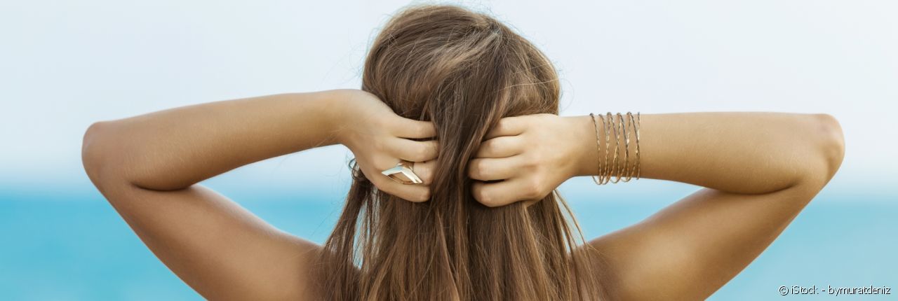 Known for being a powerful drying agent, salt absorbs water and retains it in its crystals. When it comes into contact with your locks, it dehydrates them, which is extremely detrimental to your hair’s health. It prevents the hair fibre from containing enough water to be healthy. As a result, the hair fibre dries out considerably. This effect combines with the abrasive action of the salt crystals, which harms the protective barrier of the hair and lifts the cuticles, speeding up the drying-out of the fibre and weakening your locks even more. Your hair in turn becomes brittle and split ends form, making your hair feel as coarse as straw. It is a real vicious circle! That’s why regular swimming in the sea can be a real problem if your hair is dry or damaged.